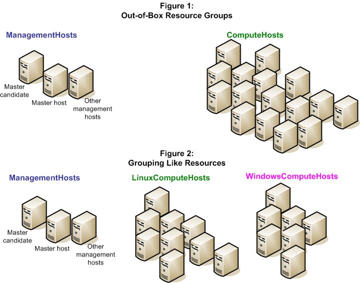 如果所有主机都相同,则这些资源组可能就足够了。 如果您的应用程序需要特定类型的主机(例如,以最低的处理器速度运行),并且并非所有主机都满足此条件,则可能需要创建资源组以将类似的主机分组在一起。